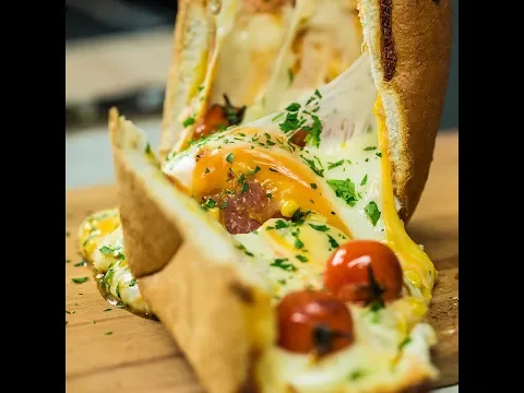 - Keep filling the bread with Cheddar slices, mushrooms, spinach, and half of the mozzarella.