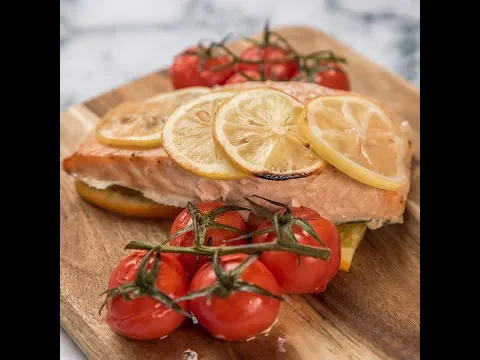 - Add the lemon slices over the salmon, then add the cherry tomatoes next to the fish. Drizzle some more olive oil.