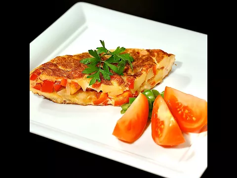 - When ready, hold a large plate over the top of the pan and turn the pan upside down to flip the omelet onto the plate.