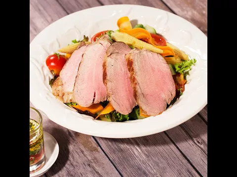 - Slice the pork tenderloin in 1/3 inch (0.8 cm) thick slices and serve it on top of the salad.