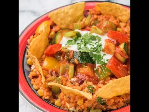 - Serve the veggie mixture on a bed of rice. Garnish with nachos, yogurt herb sauce, and fresh parsley.