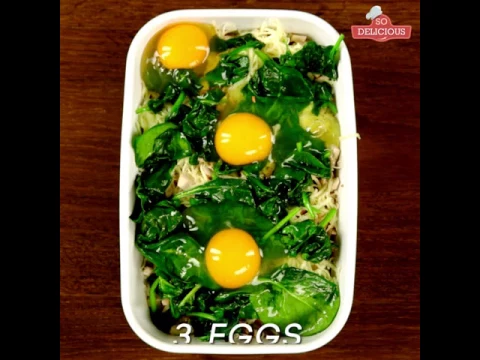 - Crack the eggs and put them over the spinach. Add a pinch of salt.