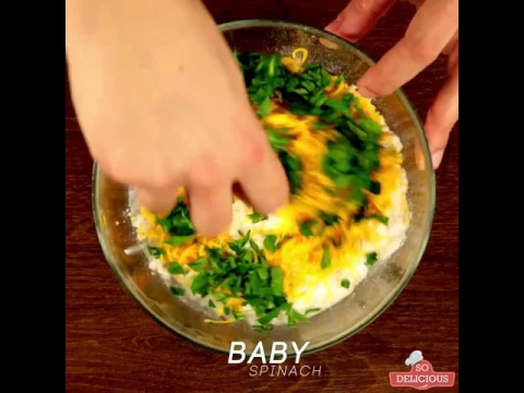 - Mix the eggs with milk, flour, cottage cheese, shredded Cheddar cheese, and baby spinach.