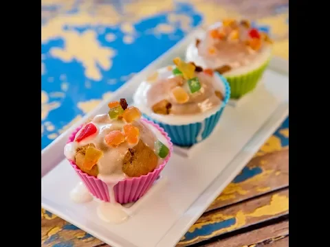 - For the sugar glaze, place the powdered sugar in a large bowl. Add the remaining milk, and mix using a spoon, until you obtain a thick glaze. Spread the glaze on top of the muffins and top them with a few candied fruit.