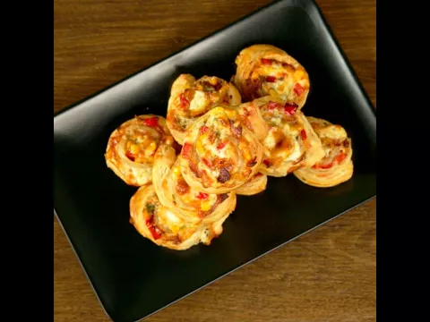 - Whisk the egg and coat with it the sweet corn puff pastry rolls.