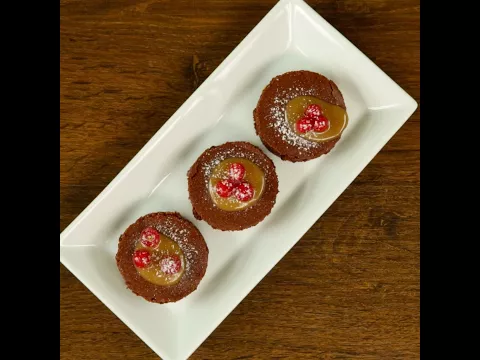 - Serve with caramel syrup and red currant on top.