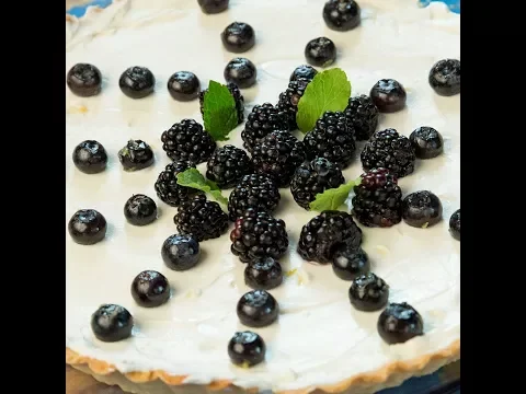 - Remove the baked dough from the tin and fill it with the mascarpone-yogurt cream. Spread it evenly and top it with berries.