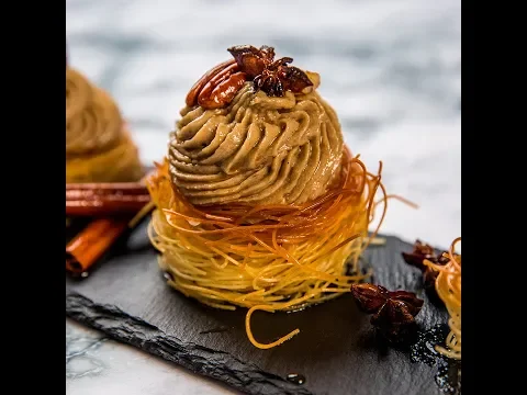 - Fill each vermicelli nest with the halvah-milk-whipped cream mixture and top with spices mixture.