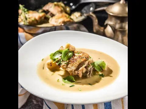 These chicken thighs are first fried, then cooked in a wine, garlic, and rosemary mixture, until they get soft and the liquid reduces into an incredibly flavored sauce. Eat the garlic cloves also, they’re delicious!