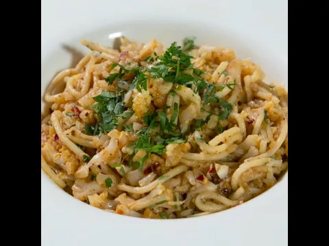 We’re not sure if, while cooking this delicious dish, we upgraded the pasta or the cauliflower. Anyway, it dawned on us that together they work wonders, especially when flavoring the oven-baking cauliflower with lemon juice, garlic, chili pepper, and olive oil.